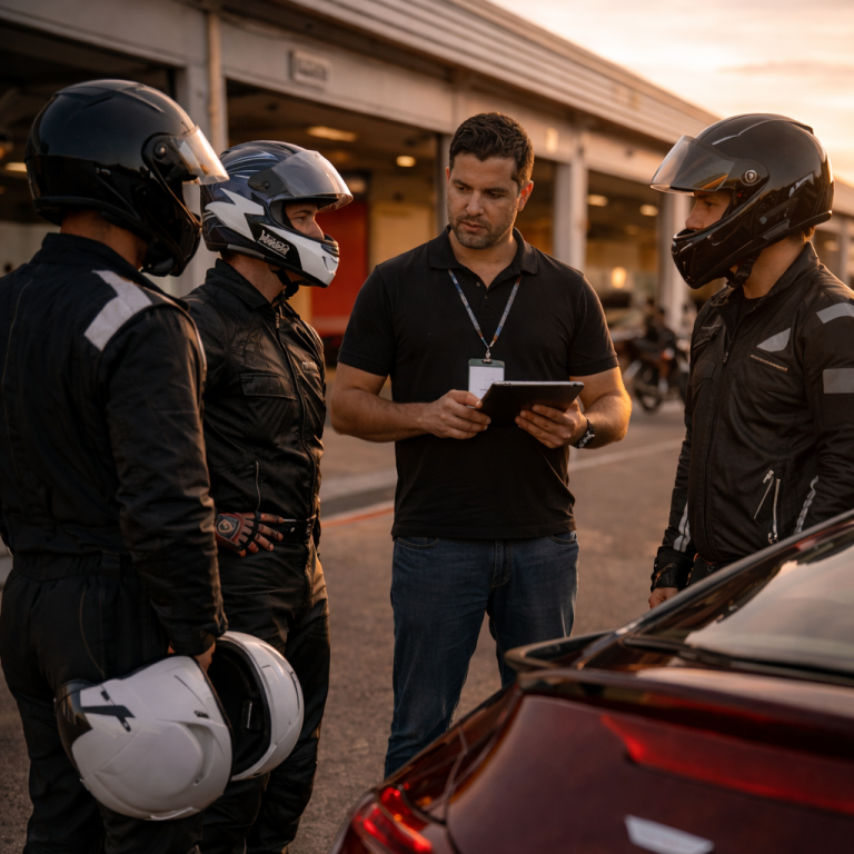 Nos adaptamos a vuestro presupuesto, tamaño de grupo y nivel de experiencia. Nos encargamos de la coordinación con el circuito, la planificación del día, la gestión de participantes y la comunicación previa para que todo fluya. El resultado: un evento redondo, sin fricción, con un único interlocutor y una organización a la altura de la pista.