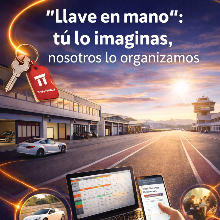Organizar un trackday perfecto no debería exigir semanas de llamadas, correos, permisos y coordinación. En TodoTandas lo convertimos en un proceso claro y profesional: tú eliges el objetivo y el circuito; nosotros nos encargamos de diseñar, coordinar y ejecutar el evento de principio a fin, con la tranquilidad de saber que cada detalle está controlado.